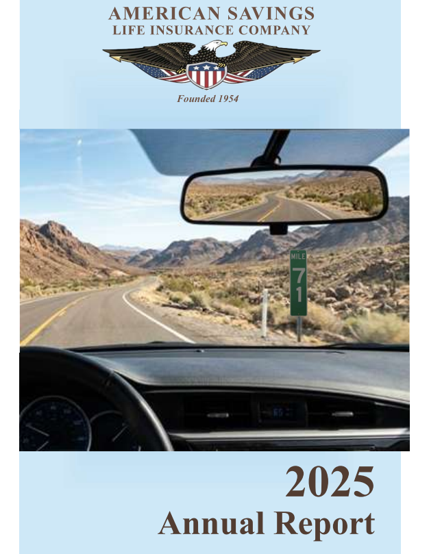 Following are key pages from the detailed financial statements filed with the Arizona Department of Insurance and the NAIC (National Association of Insurance Commissioners). The full annual statements are over 100 pages. Because of their size and they always have a blue cover, they are commonly referred to as the "Blue Book". We are providing here the pages we believe are the most important pages that best represent the financial condition of American Savings Life Insurance Company.